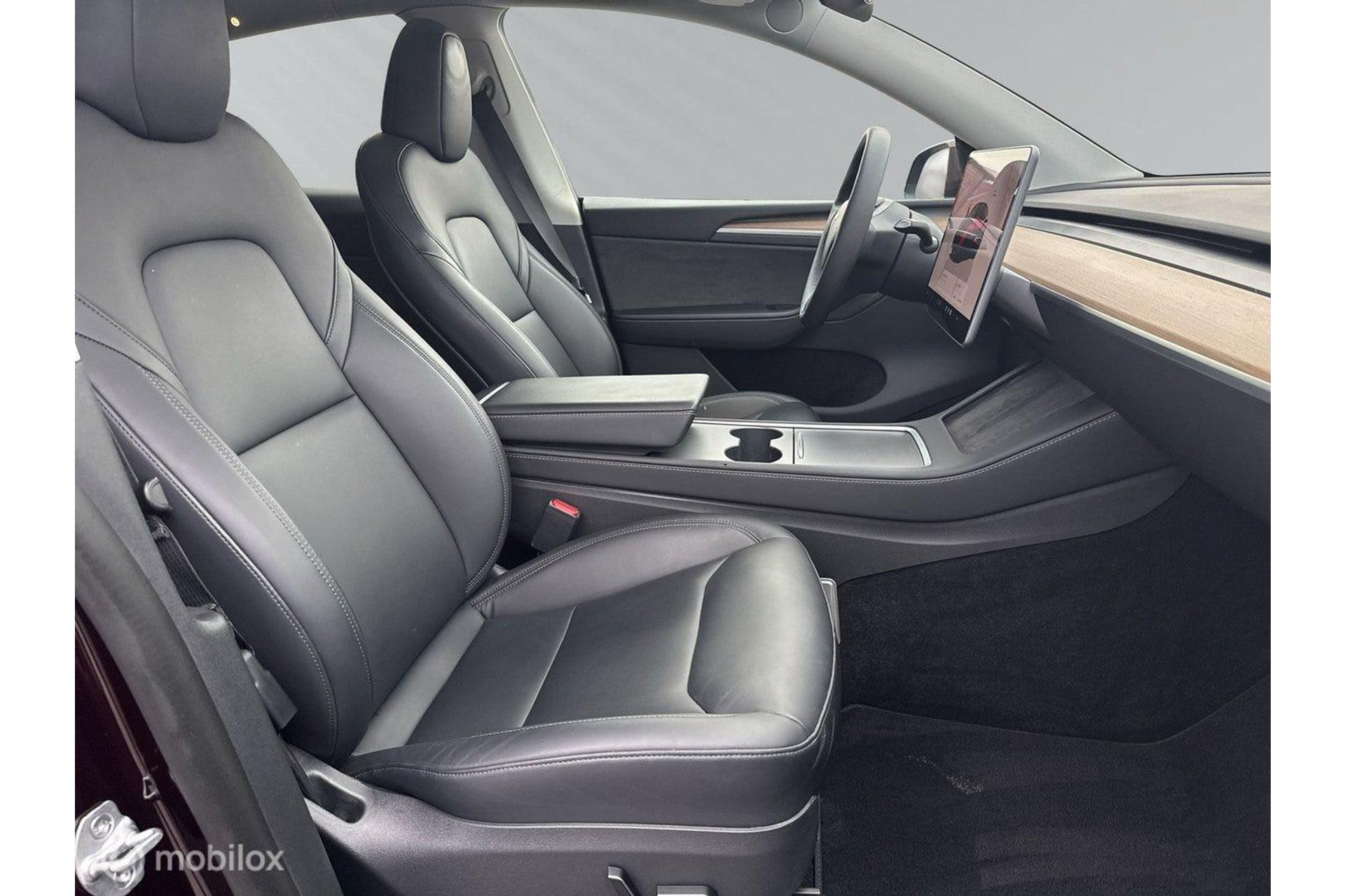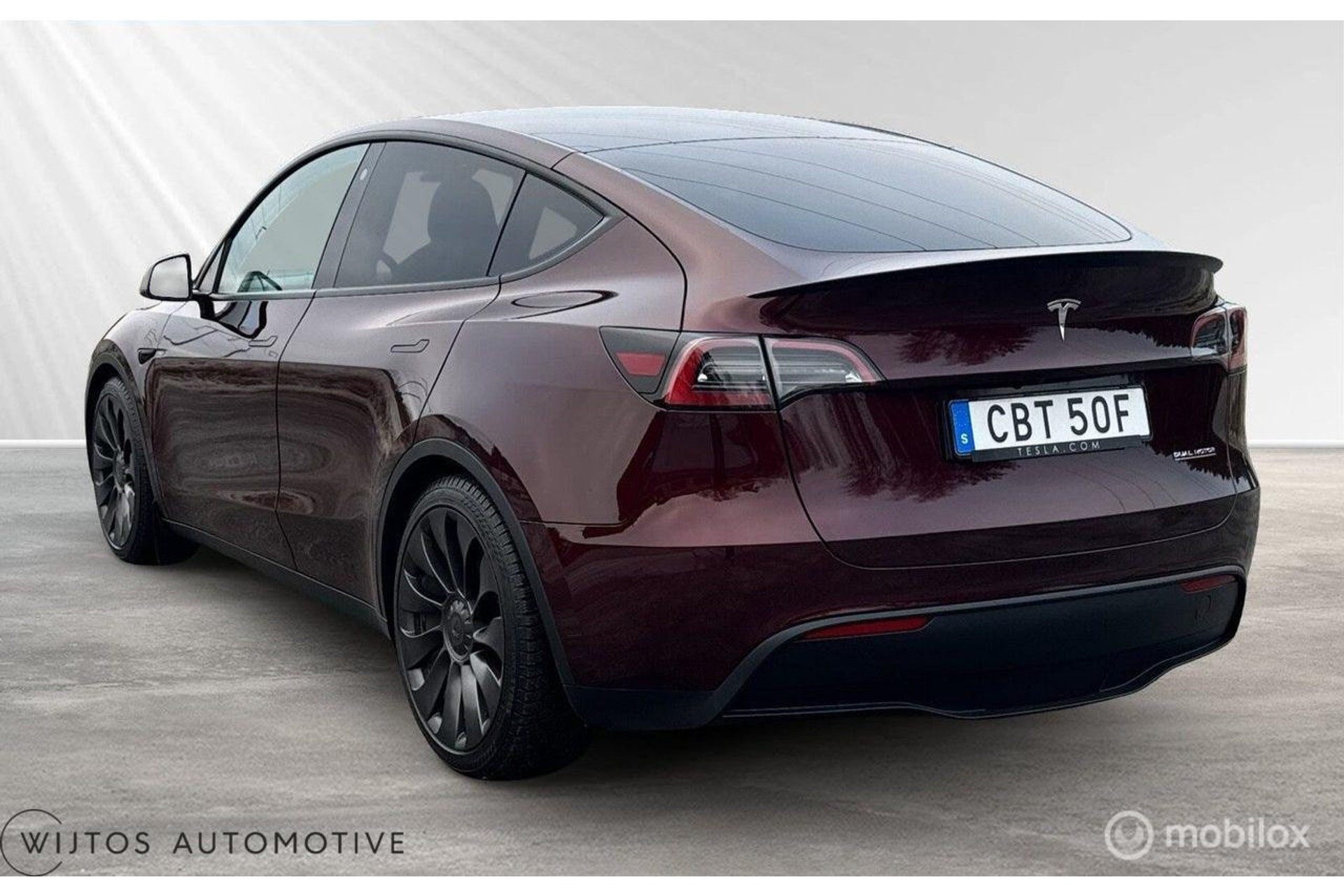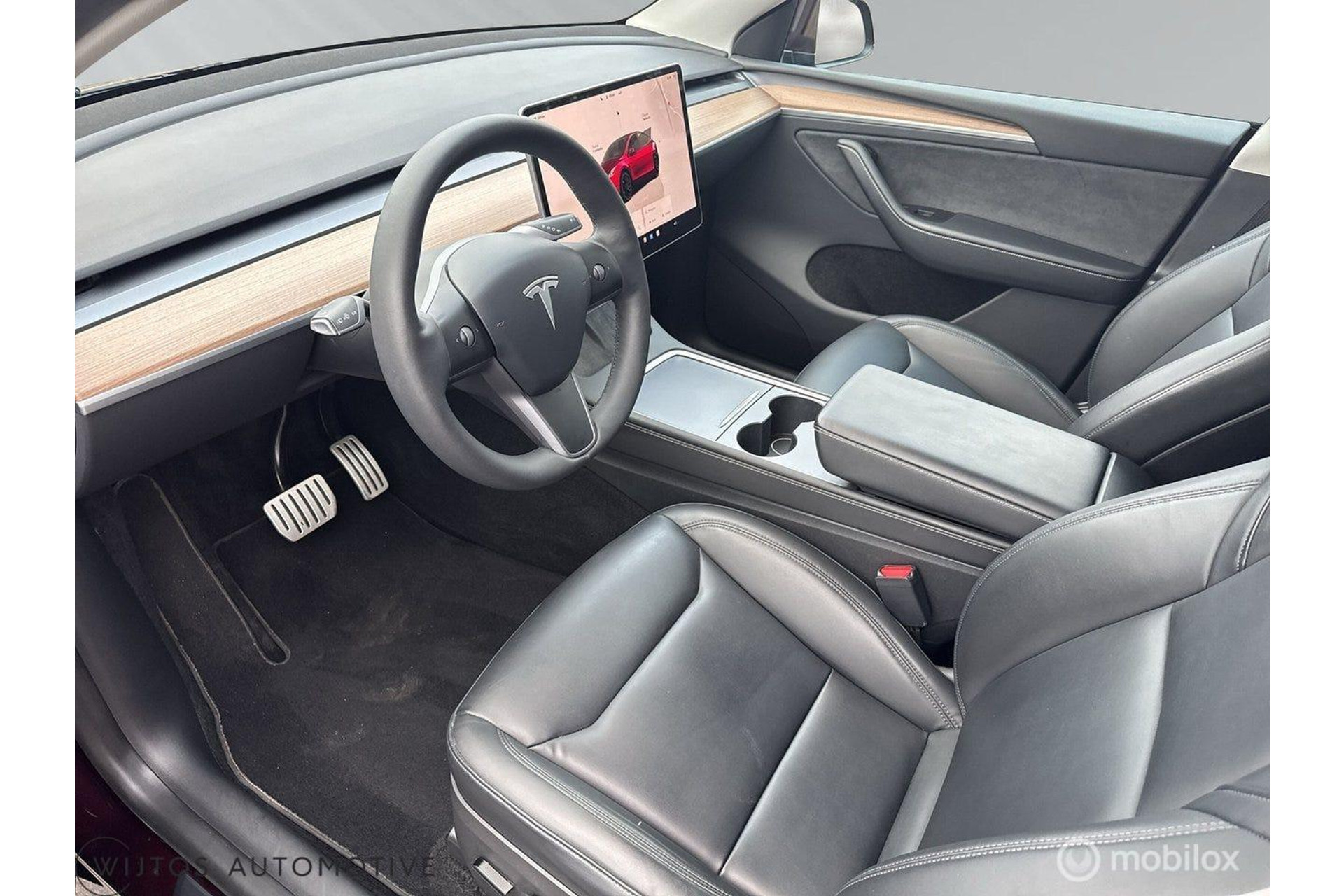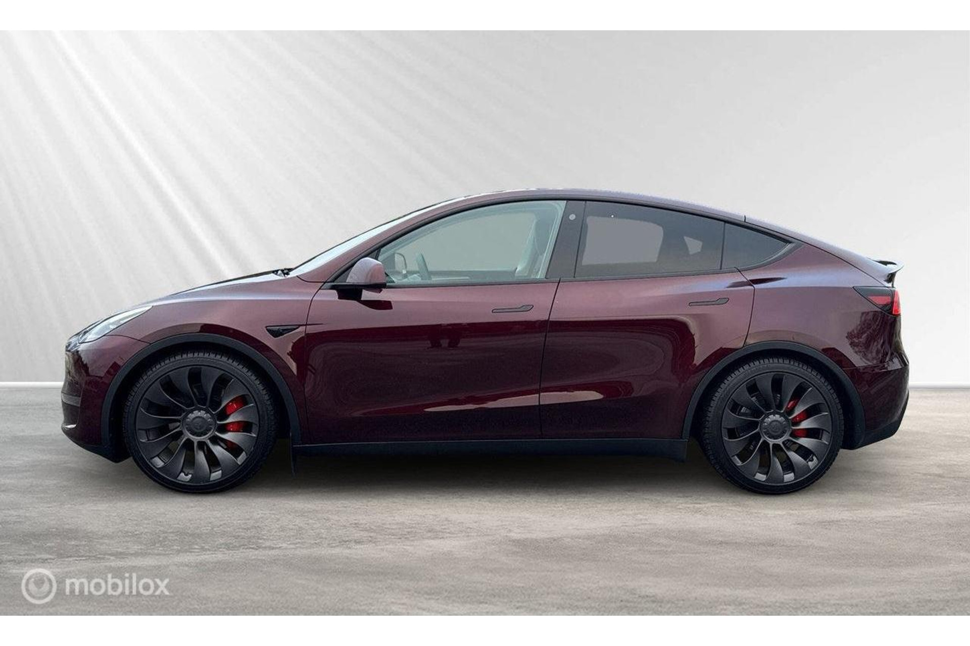 Tesla Model Y Performance uit 2024 in de bijzondere kleur Midnight Cherry Metallic. De Performance-versie is Tesla's sportiefste interpretatie van het model - 534 pk, 0-100 km/u in ongeveer 3,7 seconden en een topsnelheid van circa 250 km/u. De verschillen met de Long Range? Sportief chassis, grotere remmen, 21-inch Turbine-velgen en een aanzienlijk snellere respons. Ondanks zijn prestaties is het geen dorstige machine. Met een WLTP-actieradius van maximaal 514 km kun je lange ritten maken zonder een kwartier te hoeven stoppen. En als het tijd is om op te laden, kun je gebruikmaken van Tesla's Superchargers of andere CCS-snelladers - 250 kW DC laadt de accu in minder dan een half uur van 0 tot 80% op.