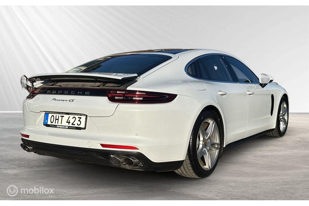 Porsche Panamera 4S met een goede onderhoudshistorie en volledig gedocumenteerde servicebeurten, waarbij al het onderhoud sinds nieuw is uitgevoerd bij erkende Porsche-dealers. De auto is gespoten in Carrara White Metallic en heeft een tweekleurig volledig lederen interieur in zwart en zadelbruin met contrasterende stiksels op het dashboard en de deurpanelen. Uitgerust met een inklapbare trekhaak. Goed uitgerust met onder andere een sportuitlaat, 18-voudig verstelbare adaptieve sportstoelen, achterwielbesturing met Power Steering Plus, adaptieve luchtvering met Porsche Active Suspension Management (PASM), Sport Chrono-pakket, panoramisch glazen dak, adaptieve cruise control, LED-koplampen met Porsche Dynamic Light System Plus (PDLS Plus), 4-zone climate control, BOSE Surround Sound System en akoestische ramen. Vergeleken met een standaard Porsche Panamera 4 biedt de 4S een aanzienlijk meer prestatiegerichte aandrijflijn met een krachtigere V6 biturbo, meer vermogen en een snellere acceleratie. Bovendien is de 4S van de grond af aan dynamischer afgesteld, met een scherpere respons van zowel het chassis als de aandrijflijn. Dit zorgt voor een meer betrokken rijervaring zonder afbreuk te doen aan het comfort voor lange afstanden waar het model om bekend staat. Kortom, dit is een zeer goed onderhouden en smaakvol geconfigureerd exemplaar van de Panamera 4S, met de juiste historie, de juiste kleurencombinatie en een uitrustingsniveau dat moeilijk te vinden is.