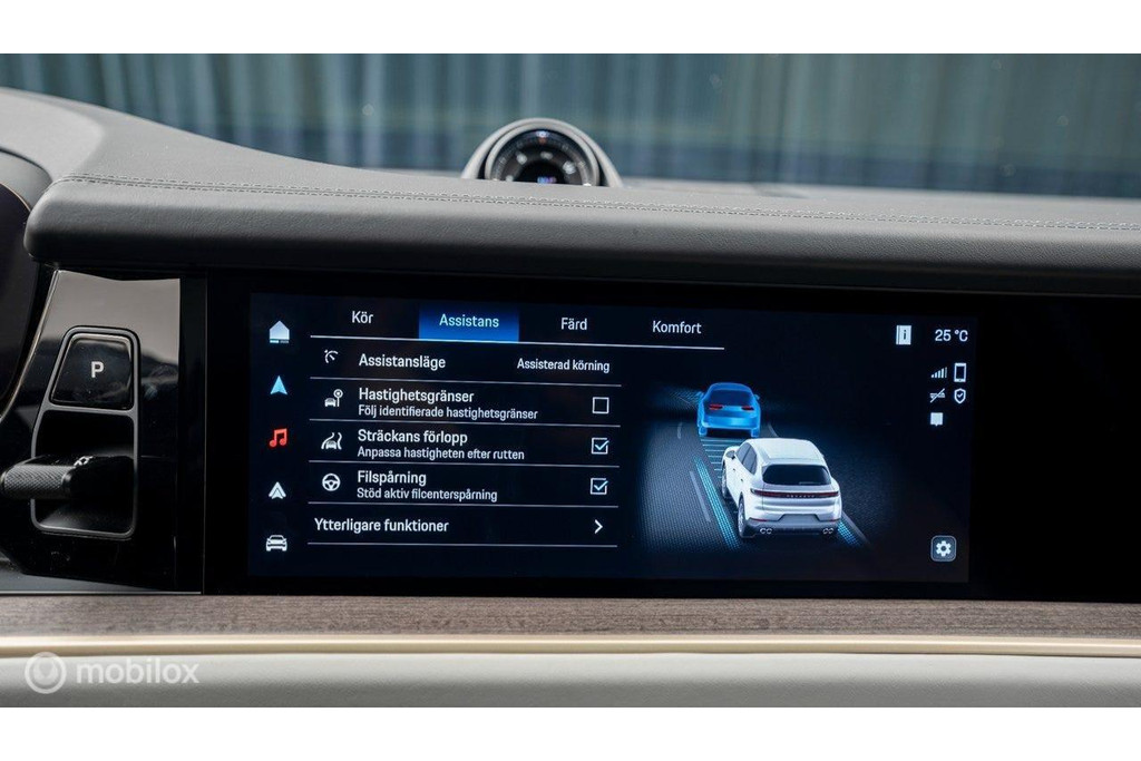 De auto is rijk uitgerust met onder andere het Neodyme Accentpakket, het Eucalyptus interieurpakket, Porsche InnoDrive, Power Steering Plus, passagiersdisplay, op afstand bedienbare standverwarming, te openen panoramisch glazen dak, PDCC, Burmester geluidssysteem, 360°-camera, achteruitrijcamera, in hoogte verstelbare luchtvering, intrekbare trekhaak en adaptieve cruisecontrol voor maximaal comfort en veiligheid.